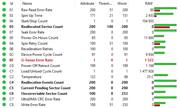 The drive has minor, non-critical errors; however, the read/write heads are functioning properly. The drive is suitable for data recovery work.