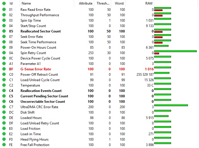 Diskam ir nelielas, nekritiskas kļūdas, taču galviņas darbojas pareizi. Disks ir piemērots datu atjaunošanas darbiem.