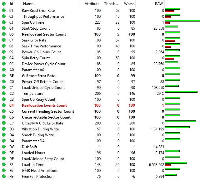 Diska SMART atribūti ir optimāli, bez būtiskām kļūdām.