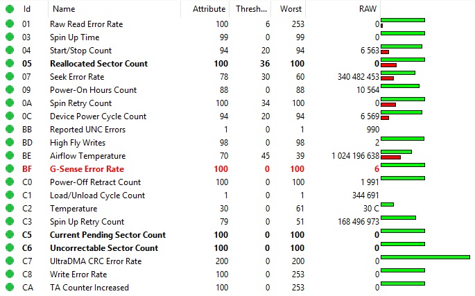 Diska SMART atribūti ir optimāli, bez būtiskām kļūdām.