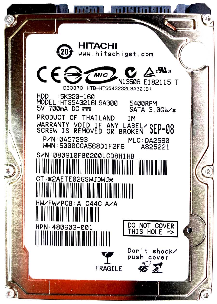 Hitachi HTS543216L9A300 DA2580 Sep 2008 Hitachi HTS543216L9A300 DA2580 Sep 2008 Preces kods: 548 Cena 30 € Ielikt grozā