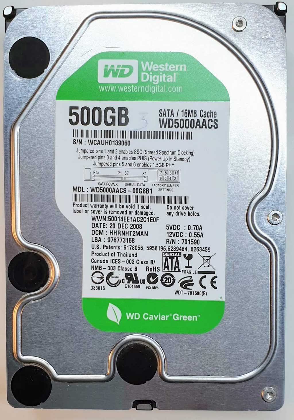 WD5000AACS-00G8B1 xxxT2xxx 20 Dec 2008 WD5000AACS-00G8B1 xxxT2xxx 20 Dec 2008 Preces kods: 112 Cena 40 € Ielikt grozā