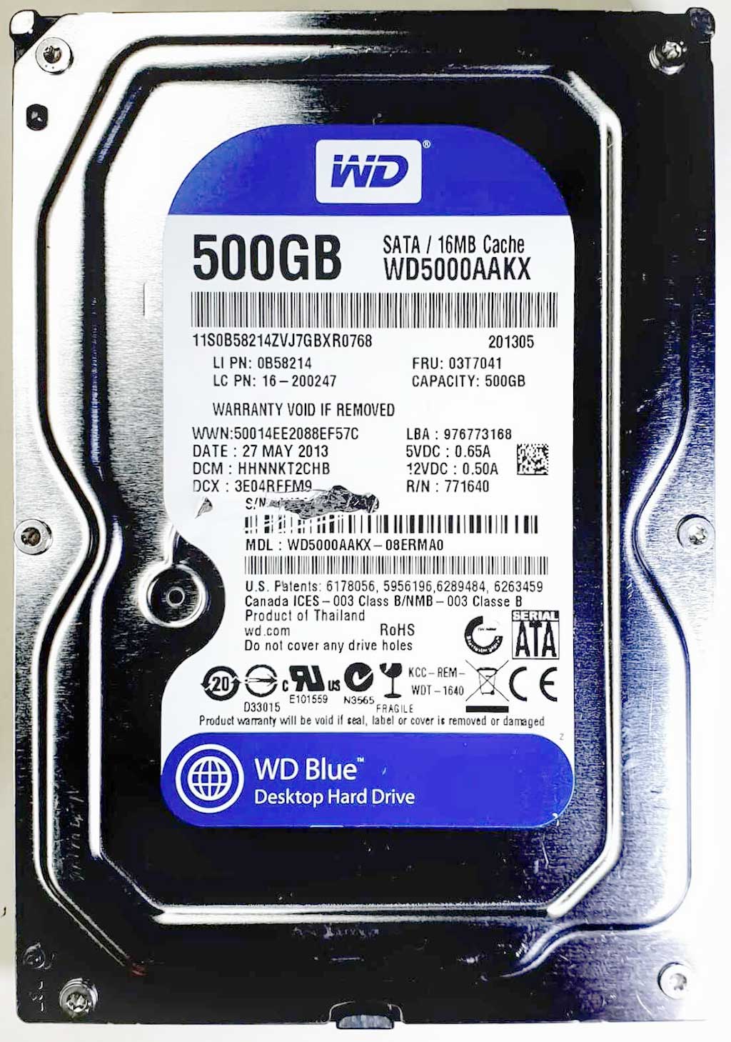 WD5000AAKX-08ERMA0 xxxT2xxx 27 May 2013 WD5000AAKX-08ERMA0 xxxT2xxx 27 May 2013 Preces kods: 113 Cena 40 € Ielikt grozā