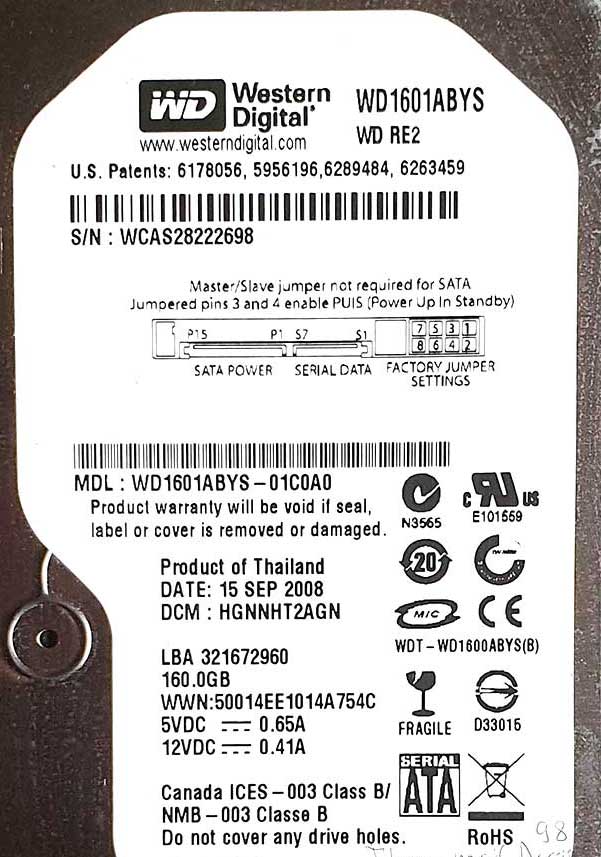 WD1601ABYS-01C0A0 xxxT2xxx 15 Sep 2008 WD1601ABYS-01C0A0 xxxT2xxx 15 Sep 2008 Preces kods: 36 Cena 40 € Ielikt grozā