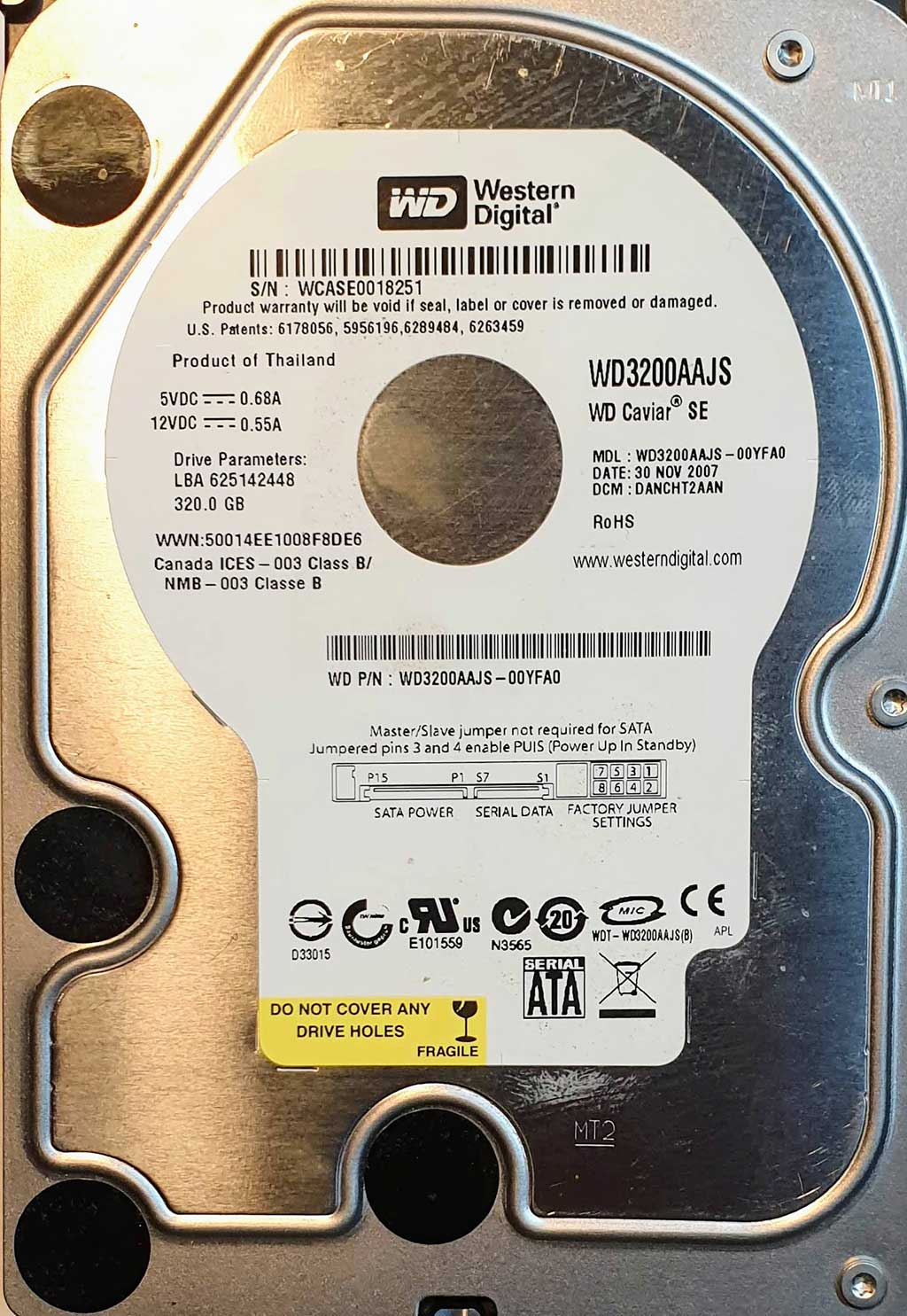 WD3200AAJS-00YFA0 xxxT2xxx 30 Nov 2007 WD3200AAJS-00YFA0 xxxT2xxx 30 Nov 2007 Preces kods: 40 Cena 40 € Ielikt grozā