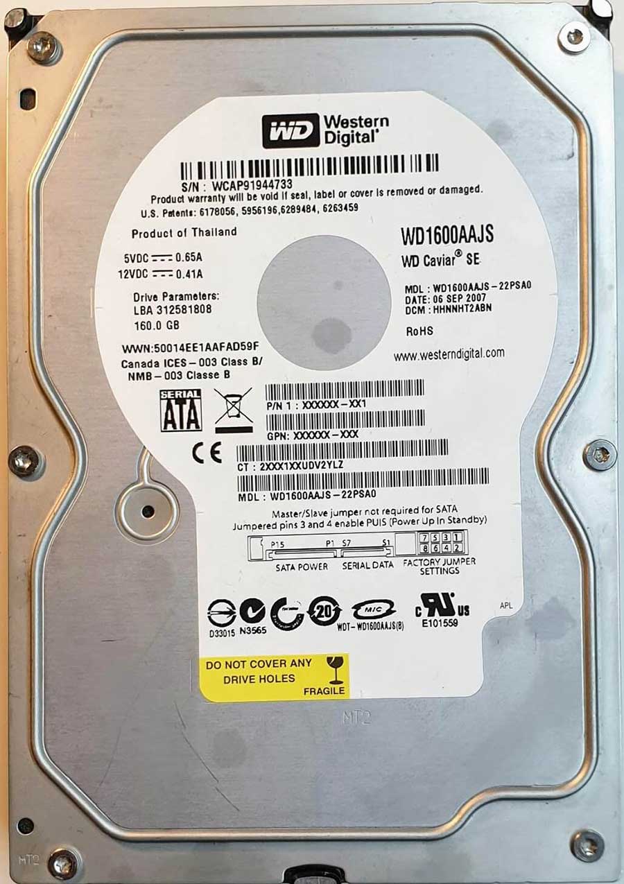 WD 1600AAJS-22PSA0 xxxT2xxx 06 Sep 2007 WD 1600AAJS-22PSA0 xxxT2xxx 06 Sep 2007 Preces kods: 122 Cena 40 € Ielikt grozā
